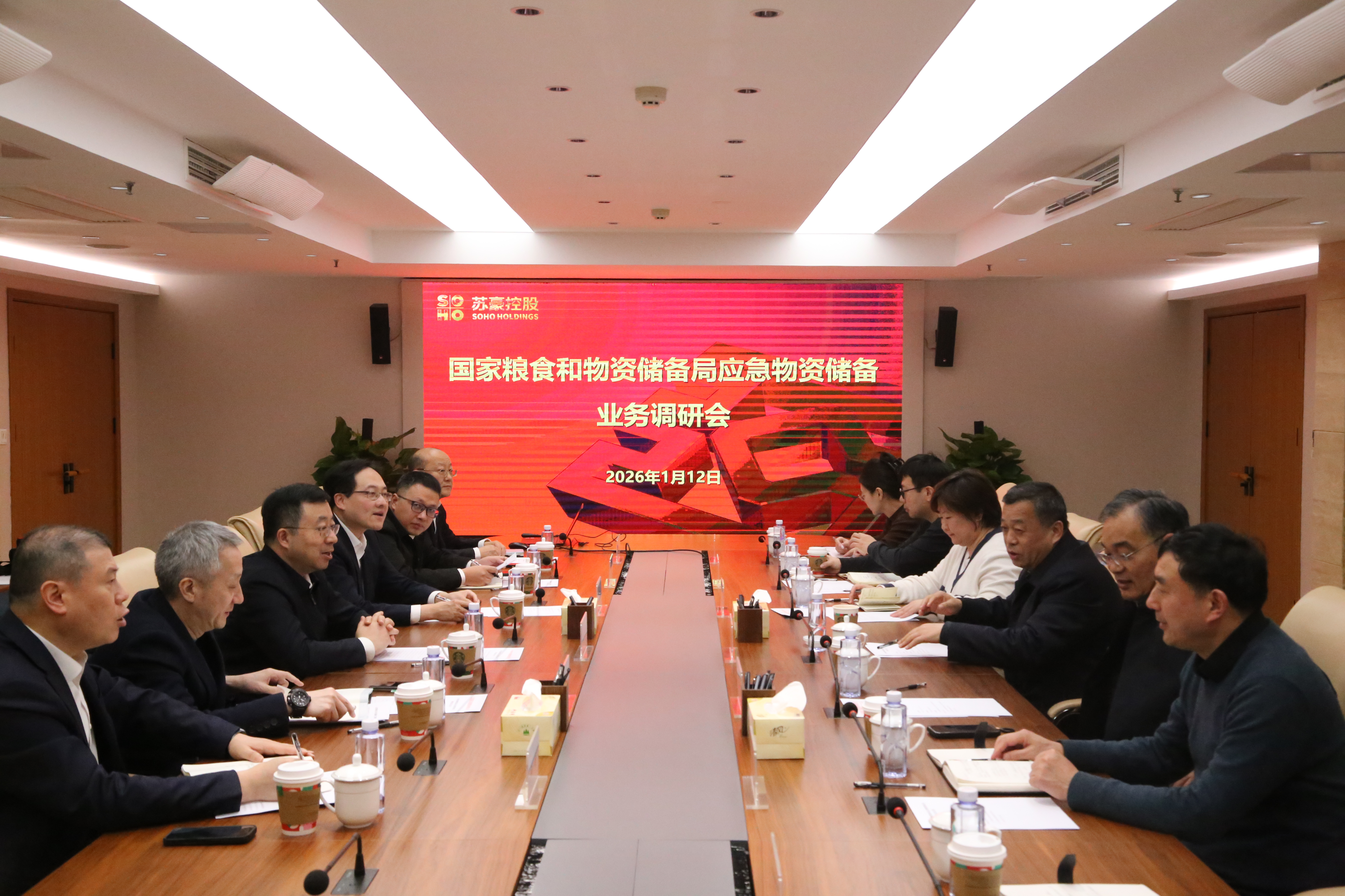 1月12日,国家粮食和物资储备局储备安全和应急物资保障中心主任高寿峰一行到访苏豪控股集团,集团副总裁李明热情接待,江苏省粮食和物资储备局党组成员、副局长董淑广参加座谈。双方围绕应急物资储备管理、信息化建设、多元化储备等相关议题展开深入交流。