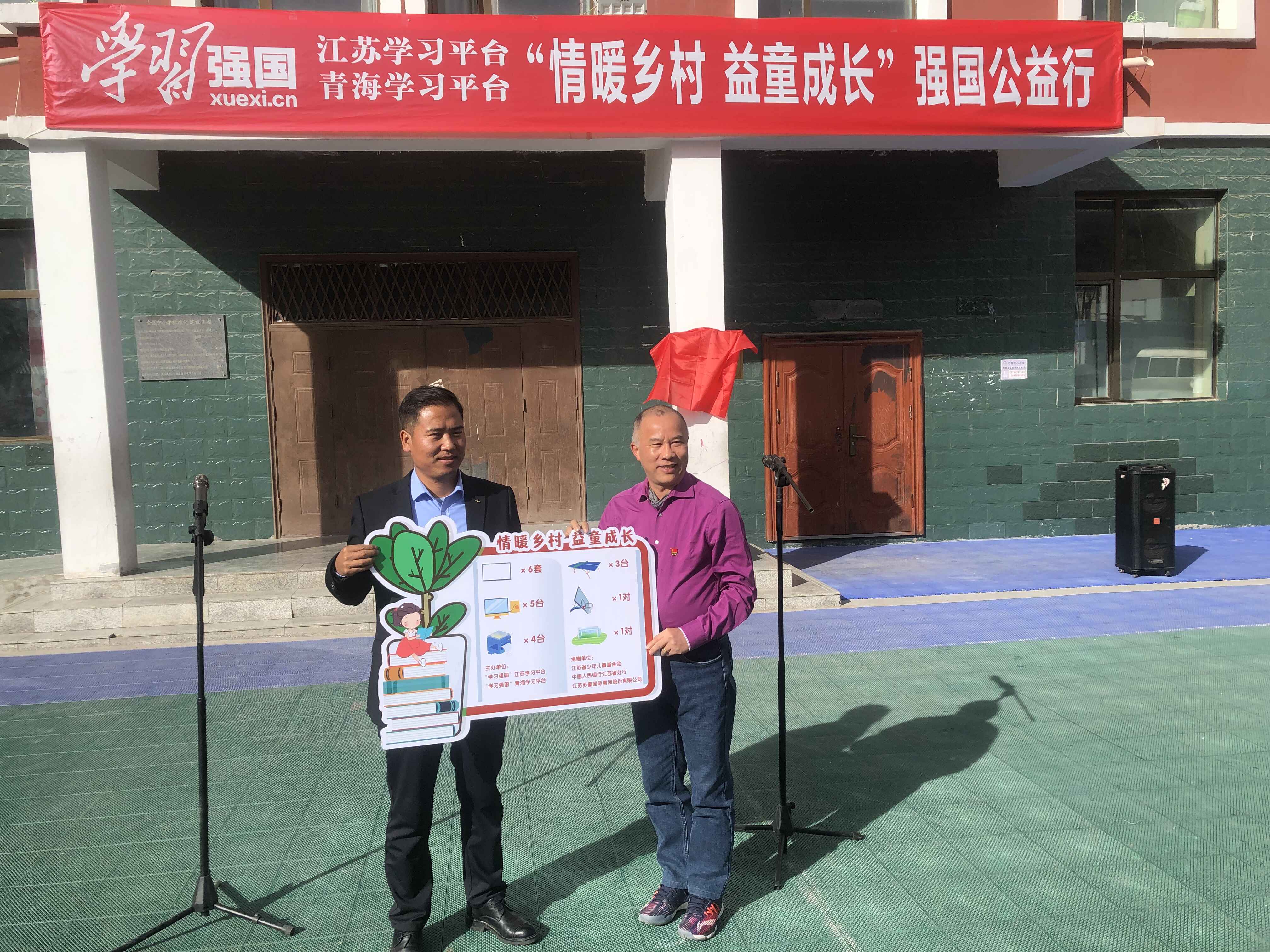 尕楞乡中心小学位于距循化县城35公里处的西南边缘山区,海拔近3000米,这里山峦重迭,沟壑纵深,地形复杂,交通不便、信息闭塞,气候恶劣、取暖时间长,办学条件差,是一所寄宿制小学。拳拳爱心点燃希望之光,片片真情托起明日朝阳。今年以来,苏豪股份灵活运用平台资源,主动参与强国公益行活动,旨在进一步提升该校的教学条件、教育环境。捐赠现场,由苏豪股份参与捐赠的6台智能交互白板一体机、5台电脑、4台打印机等教学设备,以及乒乓球台、篮球架、足球球门架等文体器材,已全部安装调试到位。新的多媒体教学设备的应用,为学校构建高效课堂、拓宽学生认知世界的视野、改进课堂教学手段具有积极重要的作用。文体器材安装到位后,带动了师生开展好阳光体育活动,让学生们在良好的环境中更健康地茁壮成长。当日,还举行了“强国康康图书室”和“强国康康快乐家园”揭牌仪式。