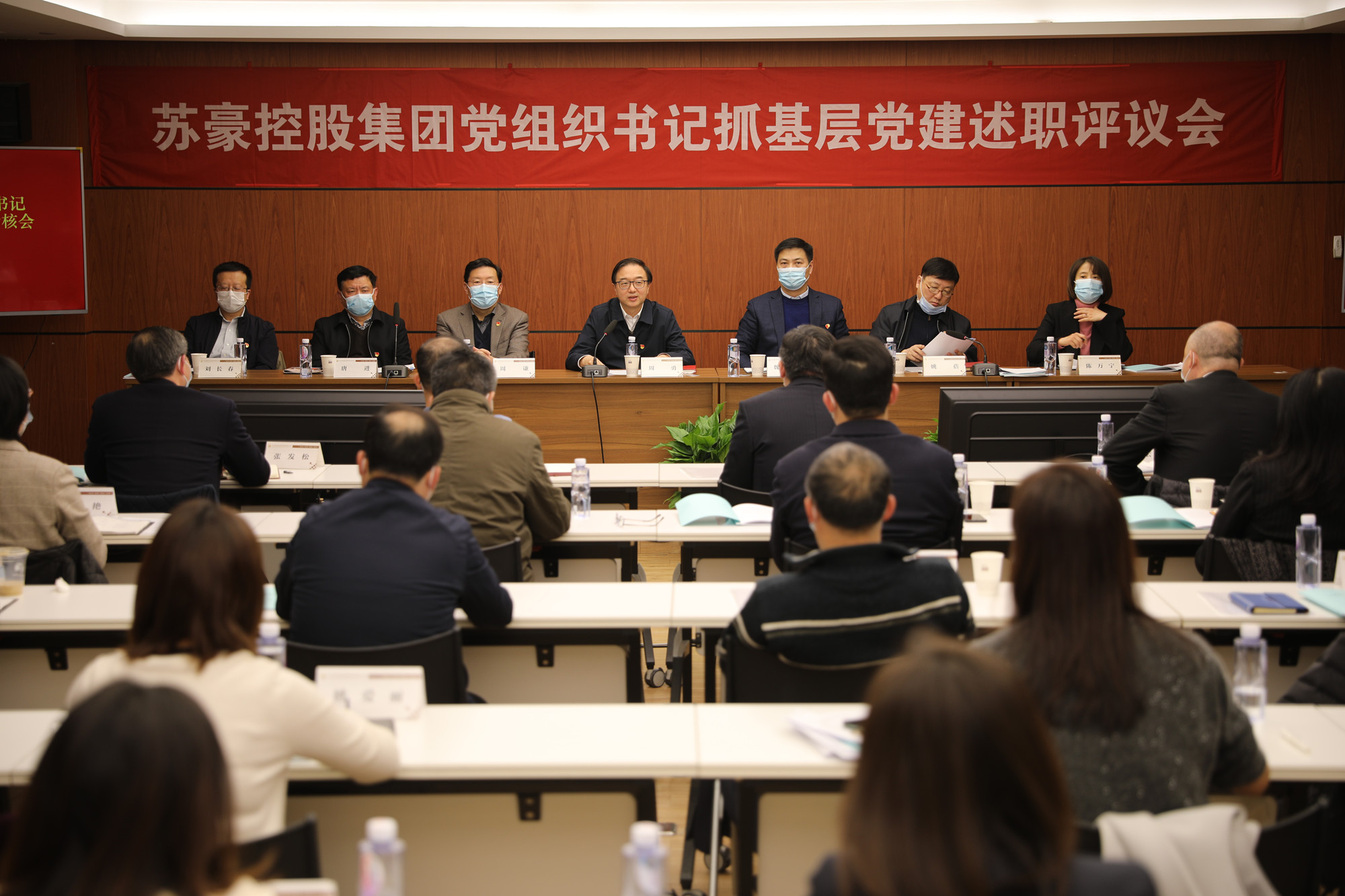 为深入学习贯彻党的十九届六中全会和省第十四次党代会精神,全面落实新时代党的建设总要求,根据省委组织部和省国资委党委部署,2022年1月4日下午,苏豪控股集团党委召开二级党组织书记抓基层党建述职评议会,集团党委书记、董事长周勇出席会议并讲话。会议由集团党委副书记、总裁魏爱春主持,专职党委副书记姚蓓代表集团党委对二级党组织书记述职进行点评。集团党委委员、副总裁周谦、唐进、刘长春,纪委书记陈万宁出席会议。省国资委派员到会指导。会上,集团8家二级公司党委(总支)书记结合年度党建工作实际,围绕2021年度述职评议考