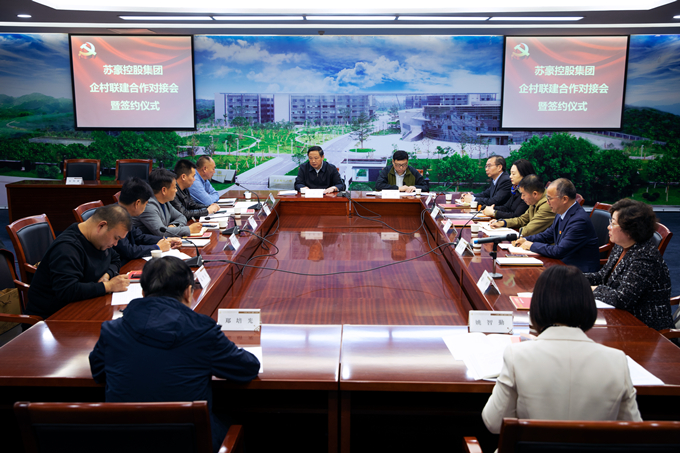 为进一步贯彻落实省委省政府及省国资委“万企联万村、共走振兴路”的要求,11月10日上午,苏豪控股集团举行企村联建合作对接会暨签约仪式。集团党委书记、董事长王正喜出席会议并讲话,集团党委副书记姚蓓主持会议。苏豪股