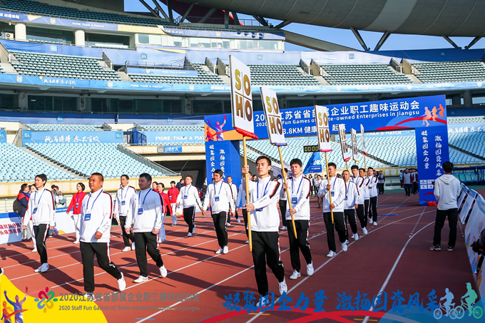 11月14日,由省国资委、省体育局、省总工会联合主办的2020江苏省省部属企业职工趣味运动会在南京奥体中心举行。苏豪控股集团积极组队、员工踊跃报名,共97名运动健儿报名参赛,并荣获团体总分第四名的好成绩,来自苏纺集团的