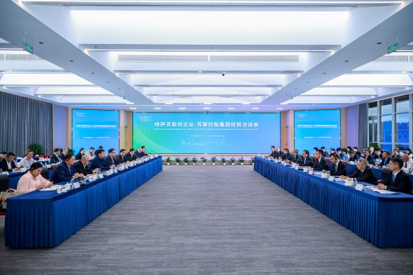 9月11日,哈萨克斯坦贸易和一体化部部长沙卡利耶夫率团到访苏豪控股集团,出席哈萨克斯坦企业-苏豪控股集团经贸洽谈会。集团党委书记、董事长周勇热情接待。哈萨克斯坦阿克托别州副州长叶列沃夫、哈萨克斯坦驻上海总领事拉合莫夫、贸易和一体化部出口促进司司长博尔甘尼索夫、贸易政策发展中心(QazTrade)总经理沃赛尔拜、工业建设部工业委员会副主席苏云巴耶夫,苏豪控股集团总裁陈述、副总裁丁海参加活动。周勇对沙卡利耶夫部长一行表示热烈欢迎。他表示, “江苏中亚中心”的顺利启幕,标志着苏豪控股集团圆满落实了今年上合峰会前
